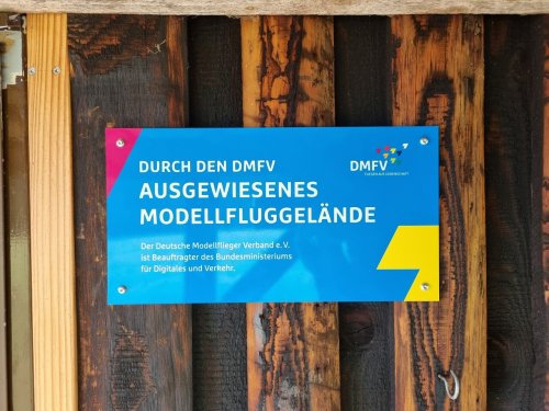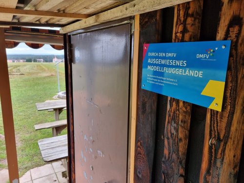 Als kleines Dankeschön und um diese Registrierung auch öffentlich bekannt zu machen wurde uns vom DMFV ein hübsches Schild zugesandt, das nun an unserer "Fliegerhütte" prangt.