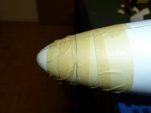 Um den Rumpf zu schützen, habe ich zuvor den Arbeitsbereich mit Kreppband beklebt.