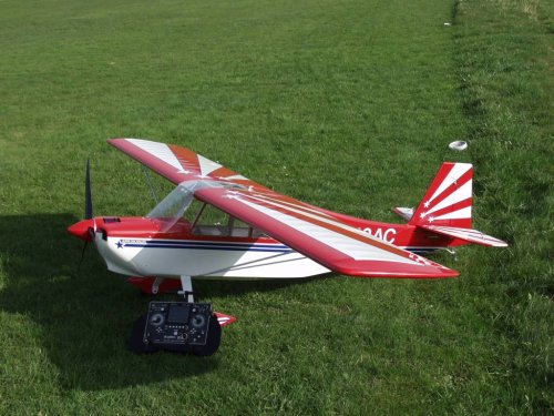 Dabei handelt es sich um eine Bellanca XL von Weiershäuser mit einem 12s Elektroantrieb mit genug "Bumms" auch für größere Modelle . Dabei reichte es nicht nur das Modell zuz beschaffen. Auch hinsichtlich der Ledetechnik galt es neue Wege zu beschreiten, will man die Schlepppausen in einem erträglichen Rahmen halten.