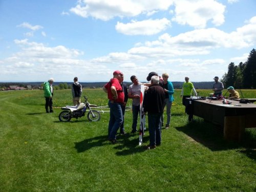 Leider gab es einen bedauerlichen Verlust eines hochwertigen Voll-GfK Seglers. Wegen eines technischen Problems mit der RC-Anlage war das Modell vom Start an unsteuerbar und drehte nach dem Ausklinken aus dem Schleppseil noch wild und schnell 2 Runden, bis es unweit vom Startplatz als Totalschaden im Feld einschlug.