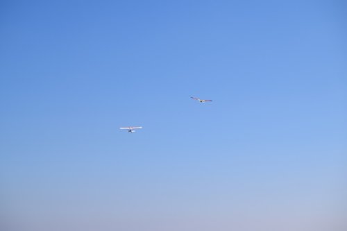 So abslovierte die neue FunCub XL des Autors ihren ersten F-Schlepp. Das war zwar mit einem winzigen Panda von Multiplex - also dem Retro-Flieger aus den 80ern und nicht der Schaumwaffel - aber dennoch war es gar nicht so einfach, das Modell zum Steigen zu bewegen, weil es zum Teil wild am Boden umhertanzte statt abzuheben.