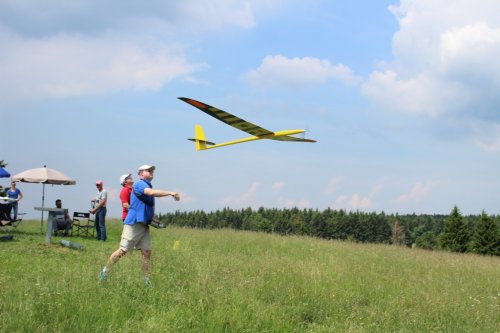 Der Donnerstag startete für einen Teil der Piloten am Weiherberg. Da der Wind die Komponente „Ost“ beinhaltete kam der Wind von der Seite, was aber, dank der E-Antriebe kein größeres Problem darstellte. Trotzdem gab es gute Thermik und gegen Abend drehte der Wind sogar zum Hang sodass unsere Neulinge noch in den Genuss eines Hangflugerlebnisses kamen.