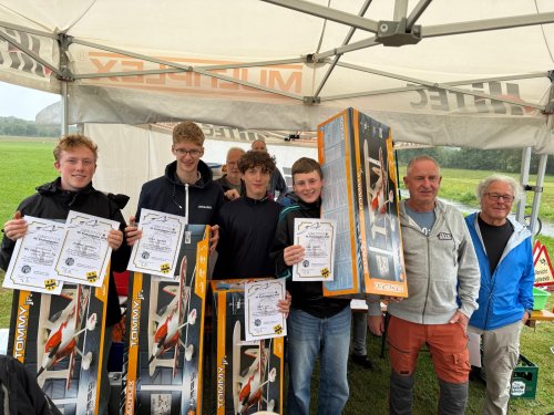 Als besondere Anerkennung erhielten alle Jugendpiloten einen quasi flugfertigen Doppeldecker „Tommy jr“ die von der Fa. Multiplex gesponsert wurden.