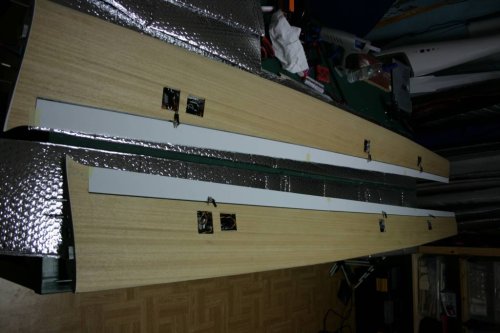 Wirkliches Kopfzerbrechen bereitete mir die Steckverbindung zum Rumpf. Hier habe ich mir nach dem dritten Fehlversuch einen Stecker fest an die Rumpfwand anzubringen geschworen, niemals mehr einen Segler ohne Flächenanformung am Rumpf zu bauen, weil das einfach ein absoluter Mist zum bauen ist. Die Probleme fingen ja schon bei den Monoblocs an, bei denen auch meherer Versuche zur Befestigung notwendig waren. Letztendlich bin ich wieder zur Variante wie im ersten Ventus übergegangen, mit einem losen aus dem Rumpf hängenden Kabel mit doppelter MPX-Buchse. Die schlechste Variante überhaupt. Bei Verwendung von Monoblocs braucht man sich über eine lose Flächensteckung wirklich keine Gedanken zu machen, weshalb eine fest im Rumpf angebrachte Stecverbindung eigentlich Pflicht war. Sie war aber wegen der Schräge im Flächenbereich durch die Rumpfform schlichtweg nicht umzusetzen.