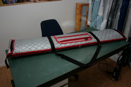 Bereits seit ein paar Wochen eingetroffen ist die Tragetasche für den Skywalker. Nachdem der letzte Schaden am Modell mal wieder ein Transport- bzw. Lagerschaden (Sharon-Fläche ist aus dem Regal gekippt) war, fiel der Entschluss die Zweckflieger kompakt in einer Tasche zu lagern.
