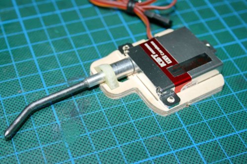Die RDS-Anlenkung von Baudis besteht aus einem Servorahmen mit einer Art Gegenlager, in dem die gebogene RDS-Stange mitsamt der Zahnkranzaufnahme kugelgelagert ist. Im Ruder selbst befindet sich eine Tasche, in der die Stange läuft und somit die Ruderbewegungen auf das Ruder weitergibt.