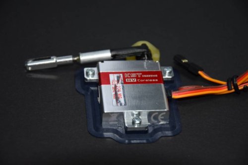 Daher hab ich aus Resten der Skywalker RDS und IDS-Anlenkung eine eigene Lösung erdacht, die sehr präzise und steif ist. Das alles mit den KST DS-225MG, die bei mir mittlerweile Standard sind und in zweistelliger Anzahl mittlerweile im Einsatz sind. Das Gegenlager ist von den ausgeschlachteten Skywalker-RDS-Anlenkungen verwendet, das perfekt mit den Rest-Servohebeln der IDS-Anlenkung harmoniert. (ich schmeiß halt manche Dinge nicht weg).