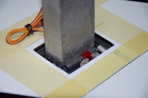Die Servoöffnungen an den Flächen sind angenehm groß und perfekt auf heutige Flächenservos ausgelegt nämlich rechteckig. Nach dem abkleben der Ränder konnte ich die Anlenkung anzeichnen und das Servo mit Rahmen positionieren.