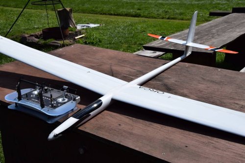 Nach dem Zusammenbau des Orca wurde noch einmal alles gecheckt. Ruderwege - OK (Höhenruder etwas viel aber das mag ich so beim Erstflug), Richtung - OK - also fertig zum Erstflug. Kurz noch ein paar Fotos geschossen, wer weiß ob er noch so ausssieht nach der Landung.