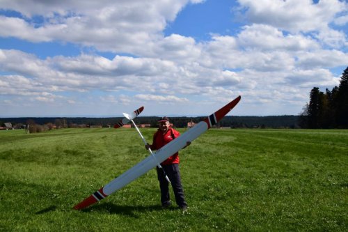 Also ging es mit Kumpel Sammy, auf den Platz, der pünktlich zum Erstflug schneefrei war. Und das schon Ende April - super.