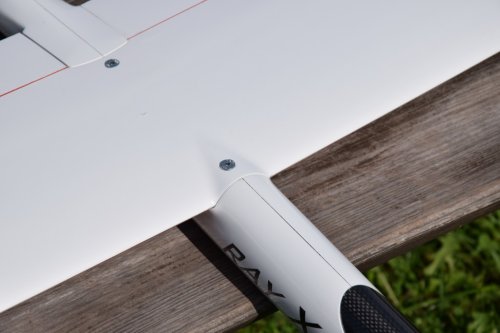 Ich frage mich wirklich, wie damals der Sharon aufgebaut wurde und warum all das Carbon beim Ray X sein muss, denn der Sharon hat in etwa die gleiche Festigkeit wie der Ray X. Warum ein Vollkohle-Rumpf bei einem F3J/F5J sein muss, verstehe ich einfach nicht. Zudem ist der Rumpf absolut 2G4 feindlich durch die Vollkohle. Ein weiteres Manko ist das im Heck platzierte Höhenruderservo, was bei einer F3J/F5J-Auslegung ziemlich daneben ist. Aber ich habe keinen Weg gefunden den vorhandenen Ruderhebel am Pendelruder gegen einen klassischen Umlenkhebel zu tauschen, um das zugehörige Servo vorne zu platzieren. Diese Tatsache musste ich vorne mit knapp 50g Trimmblei büßen, die noch in Akkukapazität umgewandelt wird.