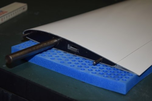 Für mich unverständlich ist die Positionierung der Servoausschnitte in den Flächen. Normalerweise reichen die bis knapp an den Holm heran, weil hier die größte Profildicke vorliegt und man die größtmöglichen Servos (Dicke) einsetzen kann. Nicht so beim Shark. Hier sind die Servoausschnitte sehr nah an der Endleiste platziert, vermutlich um eine möglichst kurze Anlenkung zu bekommen. Mir persönlich (und sicher auch vielen anderen) wäre es aber wichtiger größere und damit i.d.R. robustere Servos einsetzen zu können. Von den Hebelarmen her sollte das auch in der holmnahen Position möglich sein.