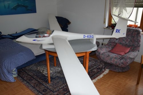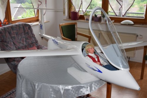 Zuerst werde ich einen Haubenschoner nähen, damit dem schicken Modell beim Transport nichts passiert. Dann wird das Modell am Flugplatz einmal komplett aufgebaut, damit ich es in voller größe genießen und fotografieren kann (daheim geht das ja wie schon geschrieben nicht).