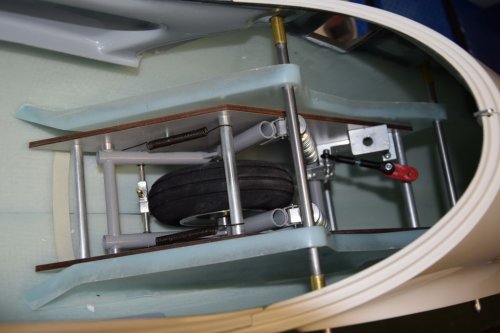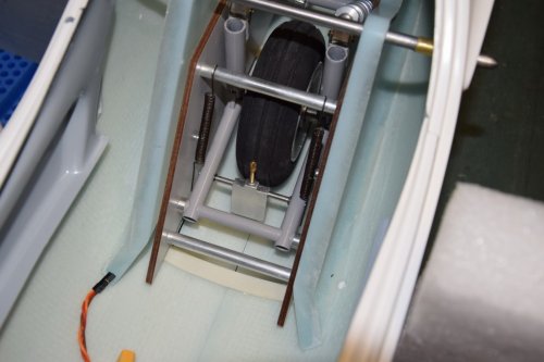 Das Fahrwerk ist bereits eingebaut und das von mir ungeliebte Haube ausschneiden, aufziehen, kleben und Rahmen lackieren entfällt auch, weil dies der Hersteller schon für mich erledigt hat (vielen Dank dafür).