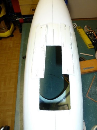 Dann war es Zeit für die Ausschnitte der Fahrwerksklappen. Ein Schritt, vor dem ich mich immer möglichst lange herumdrücke, obwohl das Ausschneiden selber nur ein bis zwei Minuten dauert.