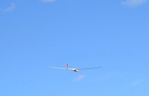Der obligatorische Schnellflugtest war sehr zufriedenstellend. Senkrecht aus ca. 400m ging es dann über den Platz zum Festigkeits- und "Soundcheck". Beides erfolgte zur vollsten Zufriedenheit. Die Böen am Platz waren ein recht guter "Alpinsimilator" und die ASH 26 darf man daher getrost als "vollgasfest" bezeichnen, auch wenn einige Puristen diesen Begriff nicht mögen. Die ASH hat sich damit für den Gaugen qualifiziert weil sie auch in rauher Umgebung sehr schnell bewegt werden kann. Das Geräusch ist auch sehr angenehm, gibt es doch kein lästiges Pfeifen sondern nur ein dezentes aber nachhaltiges Zischeln. Das bestätigt die Vermutung, dass Spaltabdeckband an der Fläche nicht nötig ist sondern nur an Höhenruder und Seitenruder.