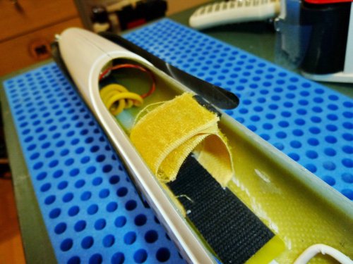 Den Abschluss bildete noch das Akkubrett. Der Akku wird in bewährter Weise mit einem Klettband gesichert.