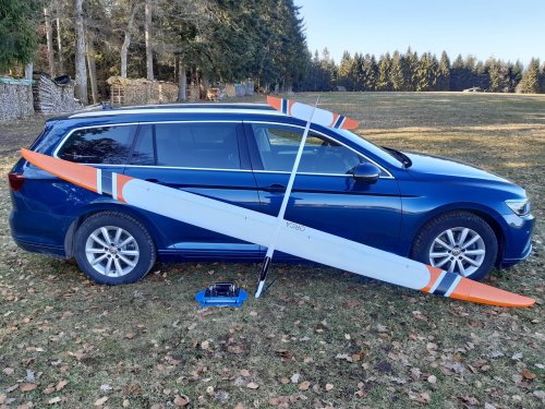 Heute fand dann, bei eisigem und stürmischen Ostwind, der Erstflug mit dem neuen Rumpf statt. Wie gewohnt fliegt der Orca einwandfrei und ich konnte gut eine Stunde fliegen, trotz des Windes. Auch die Landung war wie gewohnt problemlos und der Assist war bei dem böigen Wind wirklich eine gute Hilfe und Erleichterung.
