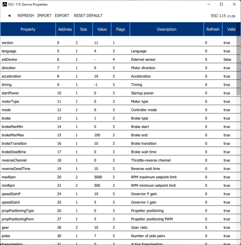 Dadurch ist eine zügige Einstellung vor der Inbetriebnahme möglich, da zu diesem Zeitpunkt alle Relevanten Daten vorliegen sollten (Motortyp, Getriebe, BEC-Spannung etc.). Speziell die Einstellung über die Jetibox-Emulation in den Jeti-Sendern kann eine ziemlich zähe Geschichte werden, speziell dann, wenn mehrere Sensoren vorhanden sind und man schon Glück haben muss, in das gewünschte Sensor-Menü zu kommen.