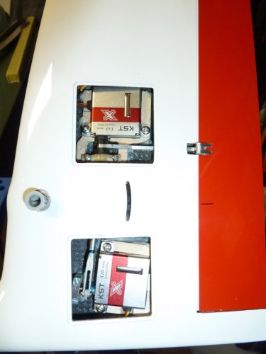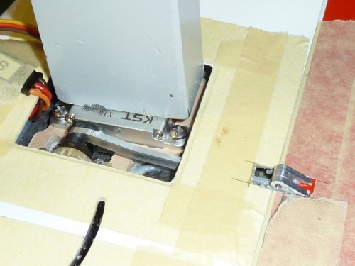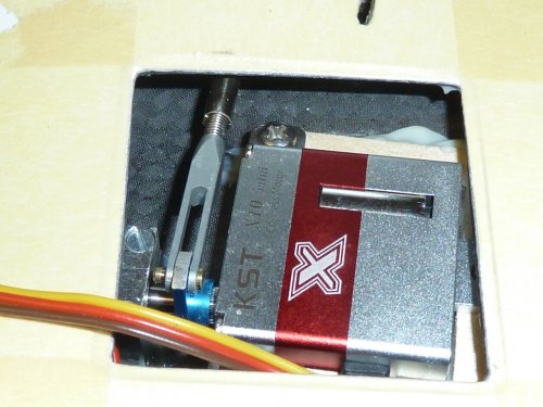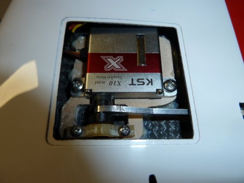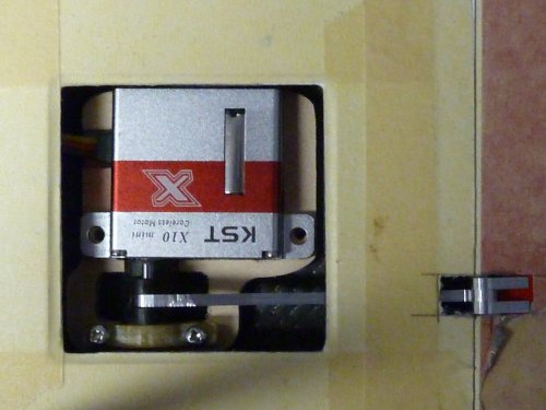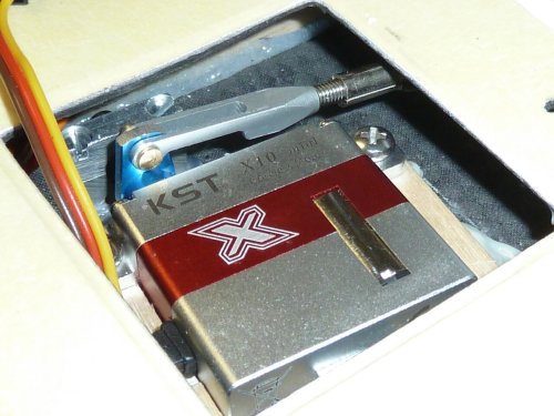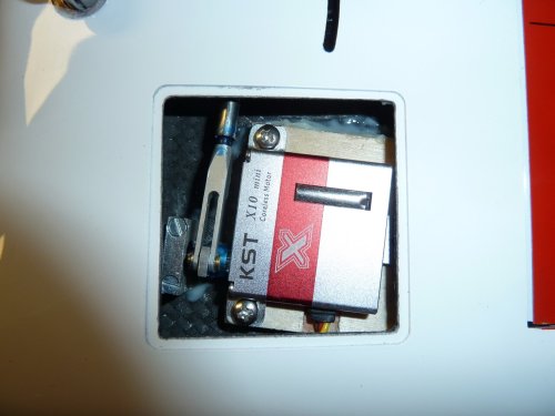 Beide Ruder werden über KST X10 mini angesteuert. Um unnötiges Kabelgewirr zu vermeiden, nutze ich üblicherweise die Version mit nur 5cm Anschlusskabel. Die jeweiligen Verlängerungen nach vorne zum Empfänger liegen dem Modell bei und sind passgenau.