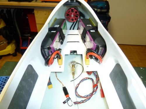 Somit ist im vorderen Bereich nahezu alles fertig. Es muss noch ein Temperatursensor auf die Motorwicklung geklebt werden und das Kabel zur endgültigen Position des LinkvarioPro geführt werden.