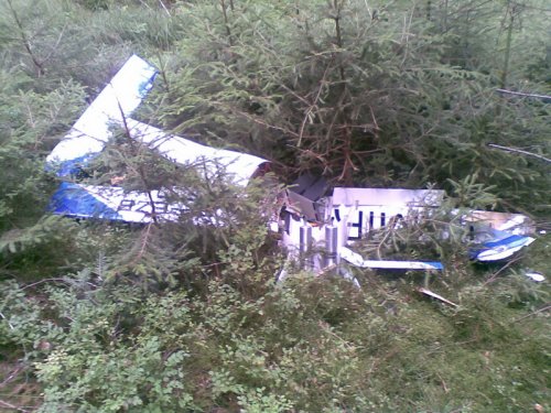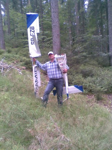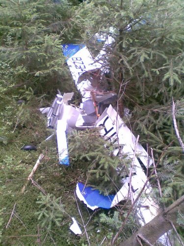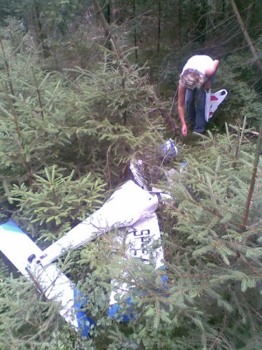 Ca. 1200m vom Platz entfernt hat sie eine vorübergehende Ruhestätte im Wald gefunden, senkrecht im weichen Waldboden steckend. Dies war vermutlich durch das noch an Flugzeug befindliche Schleppseil verursacht worden, das nur wenige Meter entfernt vom Einschlagort unversehrt gefunden wurde.