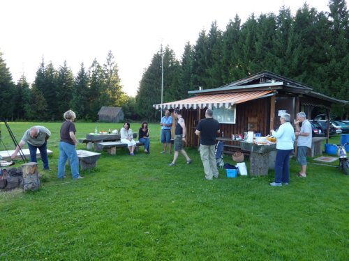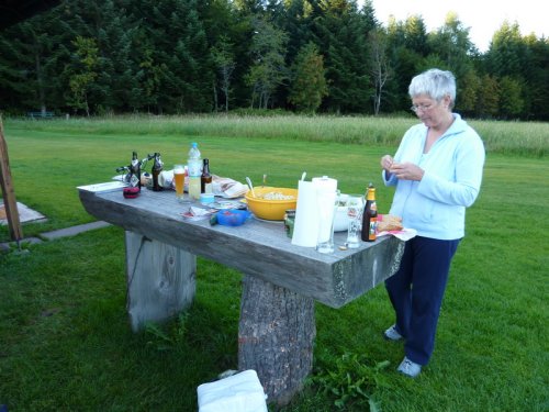 Obwohl es keinerlei Absprachen gab, bot der Buffettisch ein reichhaltiges Salatangebot und das Freibier wurde auch noch in Anspruch genommen. Es hat prima geschmeckt.