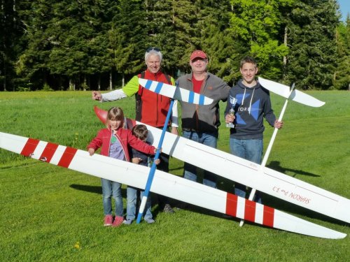 Bei den "Senioren" setzte sich Thomas Lux mit seinem Orca durch vor Thomas Kek mit einem "Soaring Shadow", einer Fusion aus Soaring Star (Rumpf und Leitwerk) und Shadow (Flächen). Zu erwähnen ist noch der hervorragende sechtste Platz unseres "Senior-Pilots" Erich Weber, der in der kommenden Woche seinen 80sten Geburtstag feiert, mit seinem extra für den Wettbewerb umgebauten Kranich.
