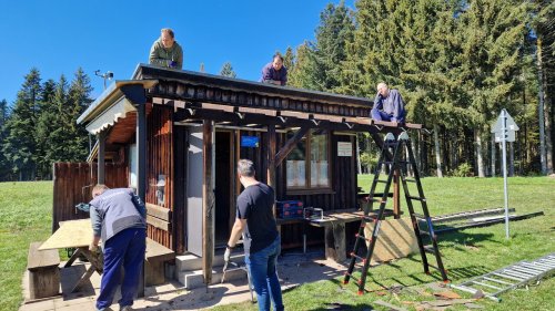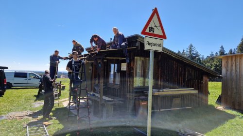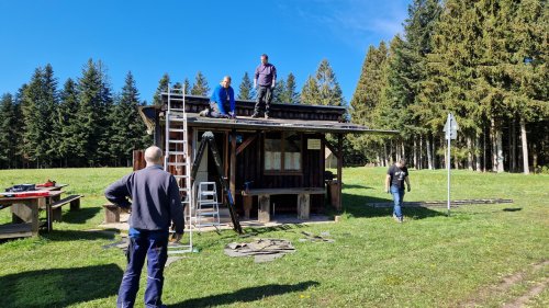 Im Vorfeld wurden schon neue OSB-Platten maßgerecht vorbereitet und in der Hütte deponiert ebenso wie spezielle Dachfolie zur Isolierung.
