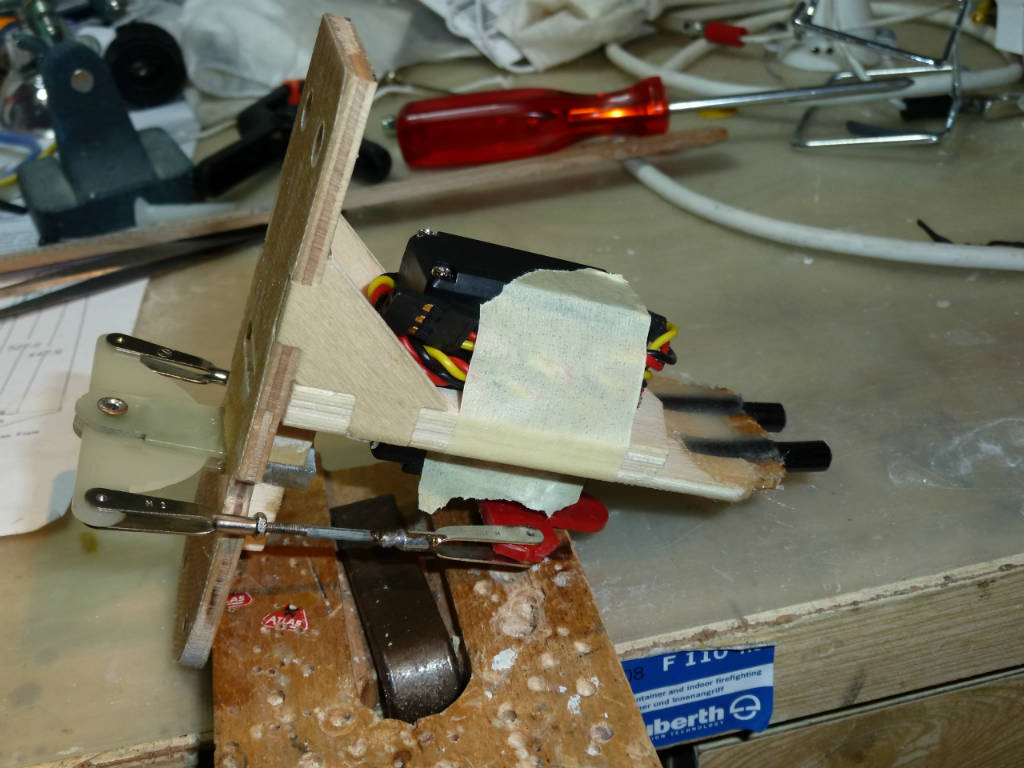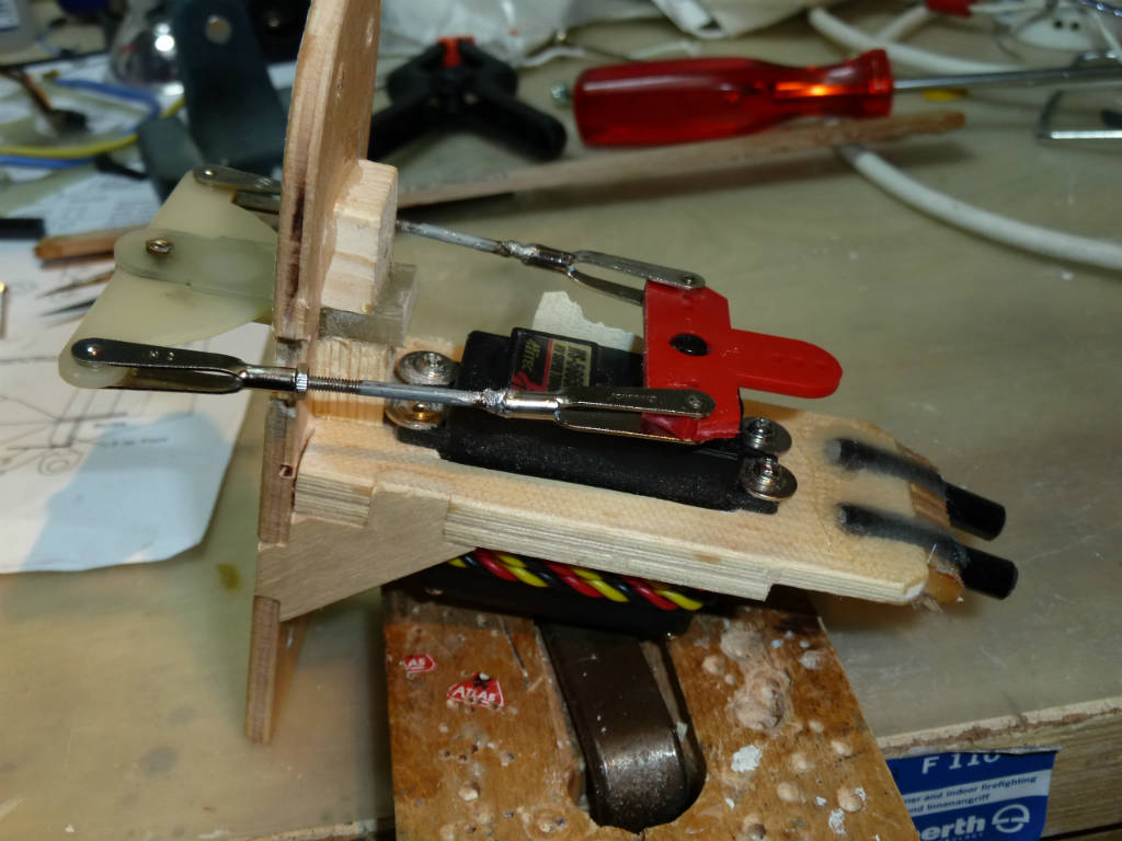Somit hab ich jederzeit Zugriff auf mein Seitenruderservo und brauche zur Montage/Demontage des Seitenruders keine Anlenkungen mehr abzunehmen.
