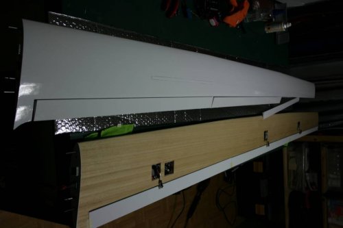 Als nächster Schritt steht nun die Erstellung der Silikonscharniere, die Fertigstellung der Anlenkungen und das Anbringen des Spalt-Abdeckbandes an. Die Anpassung der Kabinenhaube auf den Haubenrahmen sowie der rudimentäre Cockpitausbau mit Sitzschale etc. stehen anschließend am Rumpf auf dem Programm. Auch die Verkabelung im Rumpf muss noch optimiert werden. Es ist schon verwunderlich, wie wenig Platz in solch einem großen Modell im Rumpf zur Verfügung steht.