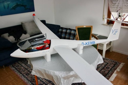 Die vergangenen zwei Wochen waren recht arbeitsintensiv und nahezu jeden Abend verbrachte ich in der Werkstatt, gab es doch jede Menge Kleinigkeiten noch zu erledigen, damit der Ventus fertiggestellt werden kann. Nun kann ich aber Vollzug melden, sodass dem Erstflug eigentlich nichts mehr im Wege steht.