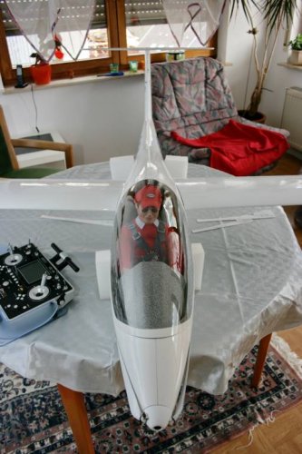 Damit komme ich auf eine Flächenbelastung knapp über 100g /dm², was sicher nicht falsch ist wenn man dynamisch fliegen möchte.