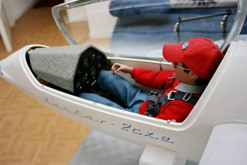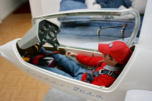 Der Einbau der RC-Anlage war recht kniffelig, da der Platz sehr begrenzt war. Die Centralbox 200 residiert hinter dem Kopf des Piloten bein SR-Servo. Dort kommt auch das Vario und der GPS-Empfänger unter. Ein Satellitenempfänger weilt in der Seitenflotte, der andere auf dem Rumpfboden unterhalb des Piloten. Damit sollte stets guter Empfang gewährleistet sein. Der RC-Switch, zum ein- und ausschalten des Modells ist auch im Rumpfboden untergekommen mit etwas Abstand zum RSat2.