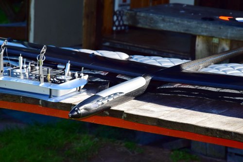 Nach dem obligatorischen Rudercheck und der GPS-Gedächtnisminute zur Positionsbestimmung ging es los. Der Antrieb beförderte das Modell gewohnt sicher und zügig auf Ausgangshöhe. Da die EWD nur grob geschätzt wurde, musste noch ordentlich Tiefe nachgetrimmt werden. Danach erste Test von Geradeausflug, HR-Trimmung usw. Die Tiefenruderzugabe beim Butterfly musste noch etwa verdoppelt werden um ein wegsteigen zu verhindern. Dies ist dem sehr großen WK-Auschlag beim Butterfly geschuldet.