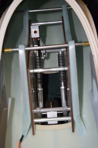 Das Fahrwerk ist bereits eingebaut und das von mir ungeliebte Haube ausschneiden, aufziehen, kleben und Rahmen lackieren entfällt auch, weil dies der Hersteller schon für mich erledigt hat (vielen Dank dafür).