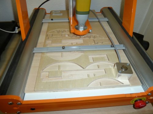 Nachdem die Spanten noch von der alten China-Fräse erstellt wurden, war die Konstruktion rund um das Servos der Schleppkupplung nun Sache meiner Stepcraft D.420. Hier zeigte sich schnell, dass Spanten in 3D doch nicht so einfach zu konstruieren sind, wenn die Erfahrung dafür fehlt. Einige Abende gingen in die Erstellung Modifikation und den Neuaufbau.
