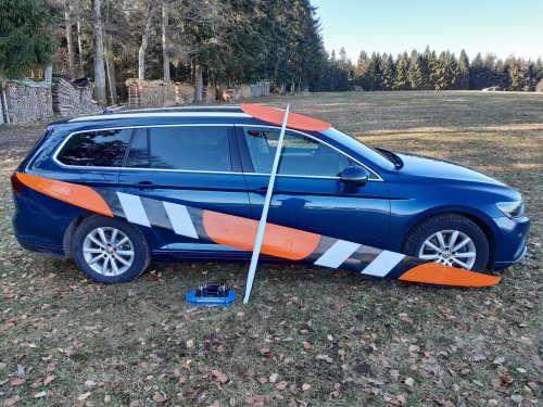 Heute fand dann, bei eisigem und stürmischen Ostwind, der Erstflug mit dem neuen Rumpf statt. Wie gewohnt fliegt der Orca einwandfrei und ich konnte gut eine Stunde fliegen, trotz des Windes. Auch die Landung war wie gewohnt problemlos und der Assist war bei dem böigen Wind wirklich eine gute Hilfe und Erleichterung.