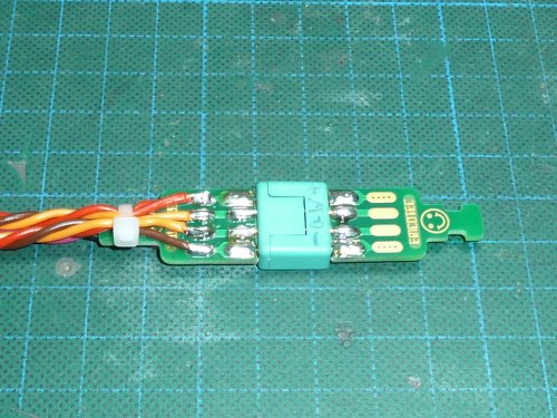 Die Verbindung zu den Flächenservos wird über MPX-Stecker realisiert, für die schon entsprechend passende Ausschnitte an Rumpf und Fläche vorbereitet sind. Um die Lötarbeiten zu vereinfachen und zur Zugentlastung werden Lötplatinen verwendet.